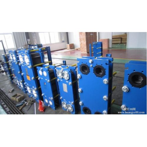 板式换热器由高效传热波纹板片及框架组成。板片由螺栓夹紧在固定压紧板及活动压紧板之间,在换热器内部就构成了许多流道,板与板之间用橡胶密封。压紧板上有本设备与外部连接的接管。板片用优质耐腐蚀金属薄板压制而成,四角冲有供介质进出的角孔,上下有挂口。人字形波纹能增加对流体的扰动,使流体在低速下能达到湍流状态,获得很高的传热效果。并采用特殊结构,保证两种流体介质不会串漏。